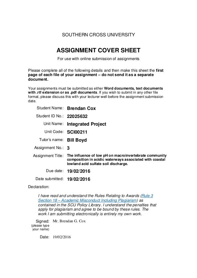 Assignment cover sheet scu. Estimate how long each small task will take eg. The cover page includes a header title of the assignment the writers name and the name of the institution. Assignment question reading unit materials and making notes using library databases to undertake research brainstorming research findings drafting editing.