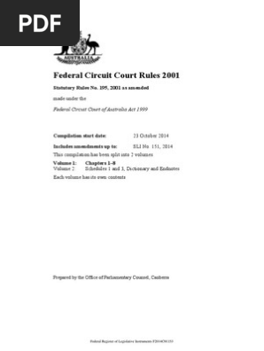 Fair Work Ombudsman v Trek North Tours Anor No2 2015 FCCA 1801 Cover sheet and Orders. For more information on filing procedures in federal court see Practice Note Commencing a Federal Lawsuit. Forms under the Federal Court Bankruptcy Rules 2016.